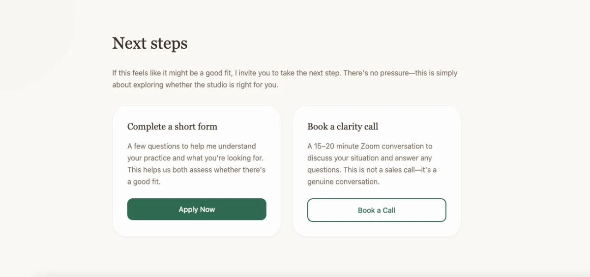 No. The Practitioner Studio is not a course with a fixed curriculum and end date. It is an ongoing coaching studio where we meet weekly, work through real challenges together, and make steady progress over time. The focus is on implementation and reflection, not passive learning.